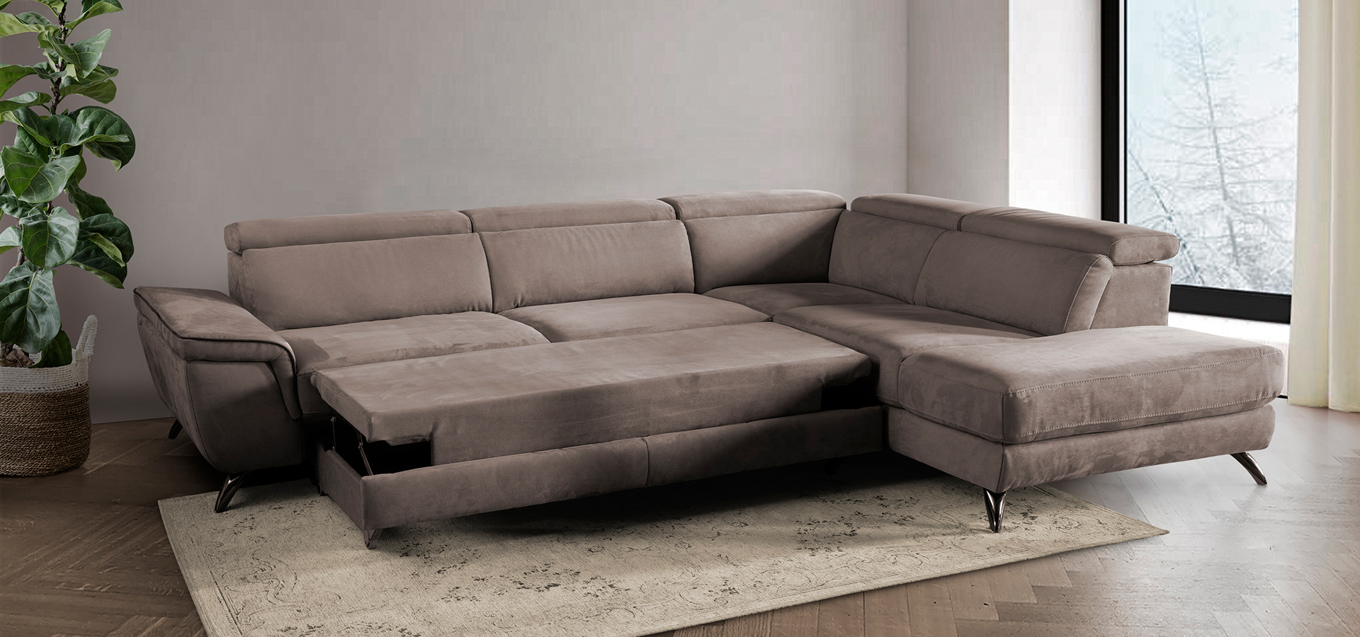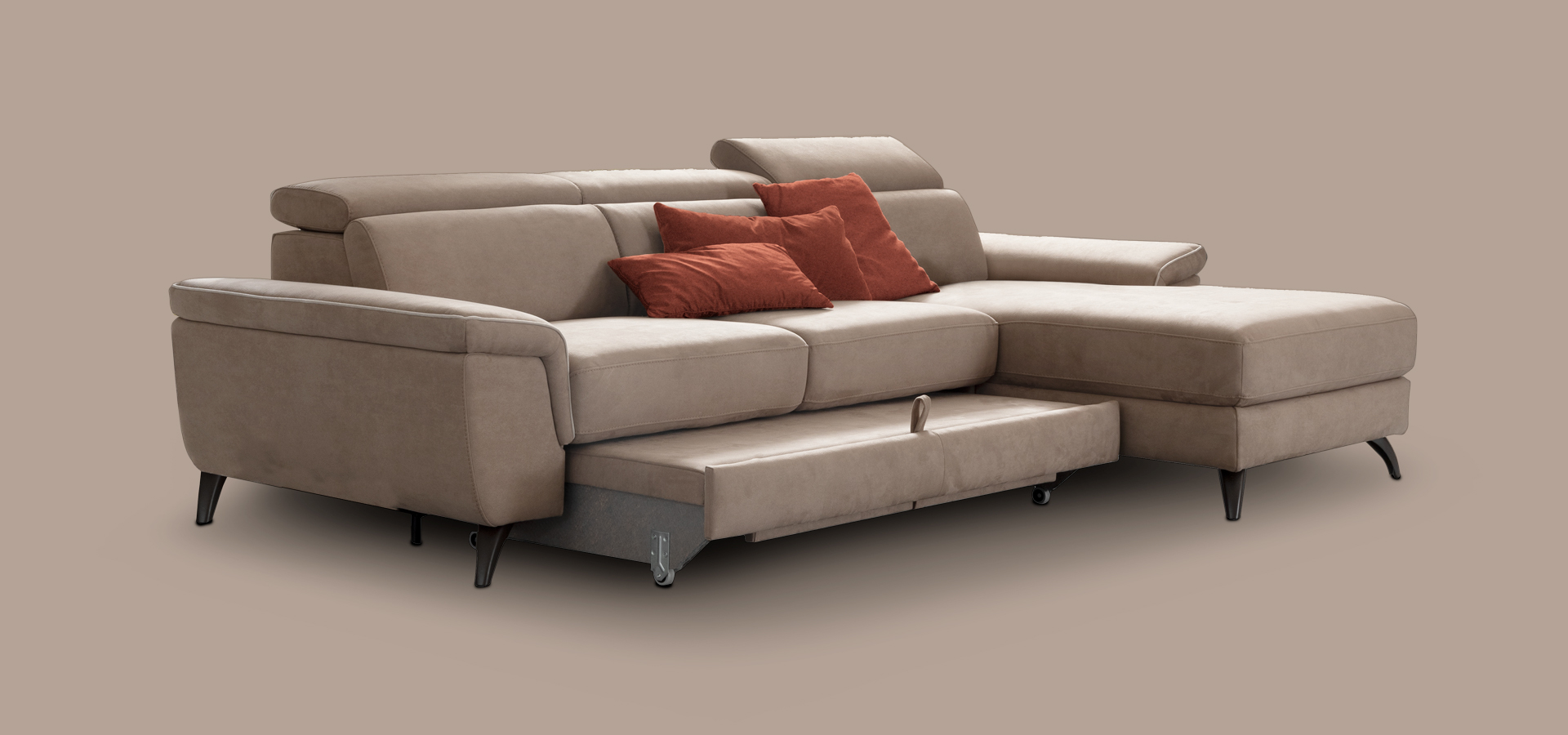 Una comoda pediera estraibile rende questo divano adatto come letto per gli ospiti.