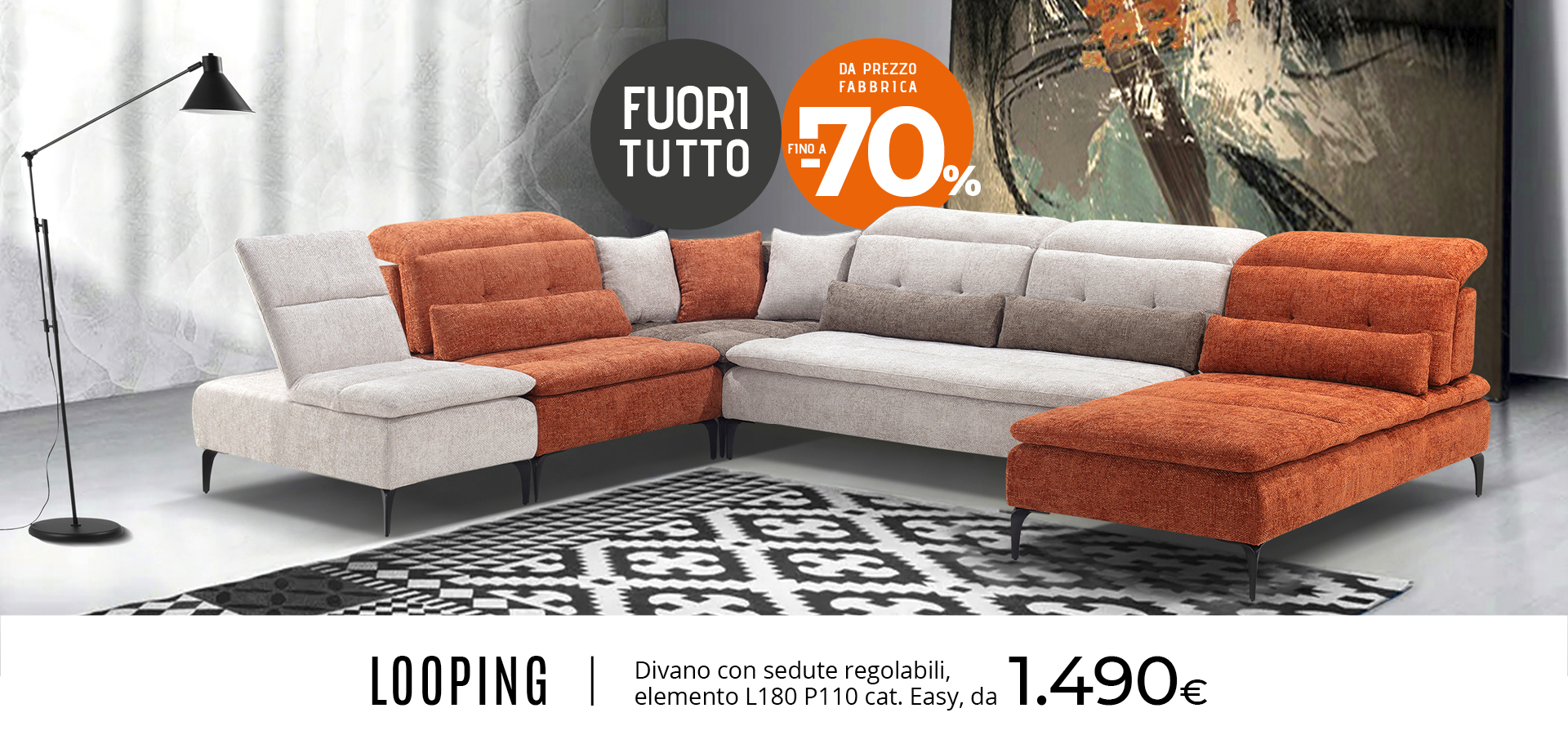 Divano componibile con sedute regolabili in diverse inclinazioni, elemento L180 P110 cat. Easy