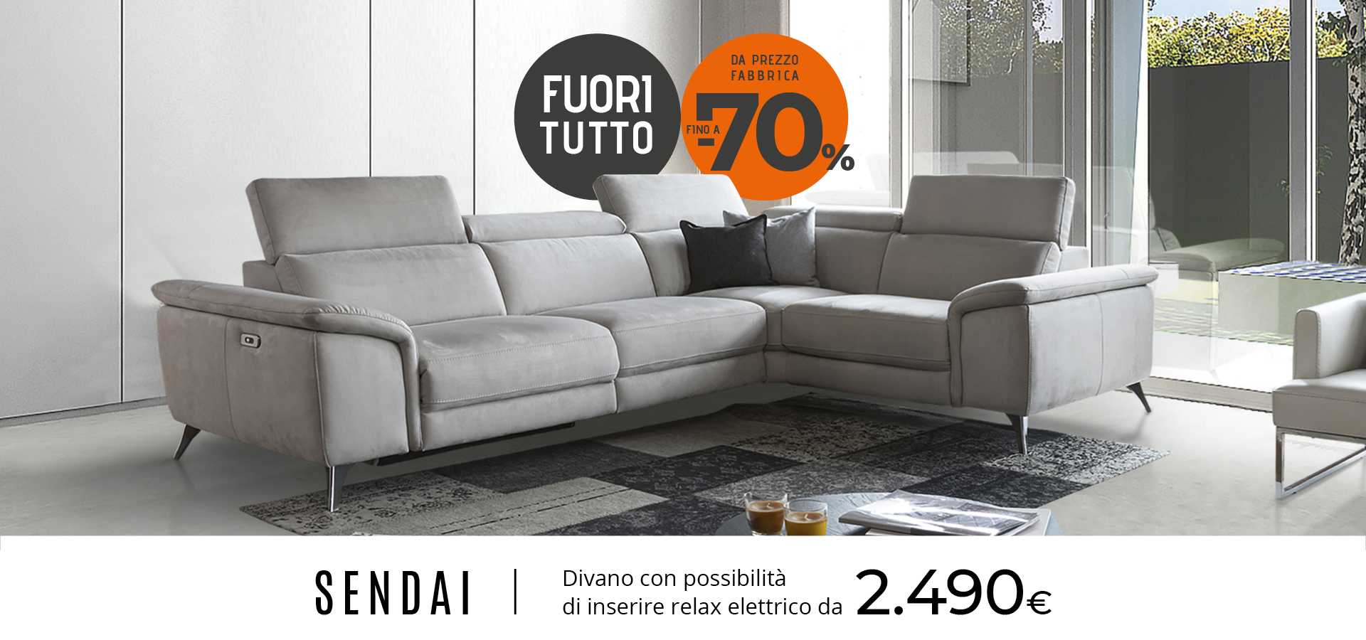 Divano angolare con poggiatesta regolabili e possibilità di inserire relax elettrico. Vieni a provarlo nel nostro showroom in fabbrica a Osio Sotto (BG) Aperto anche la Domenica.