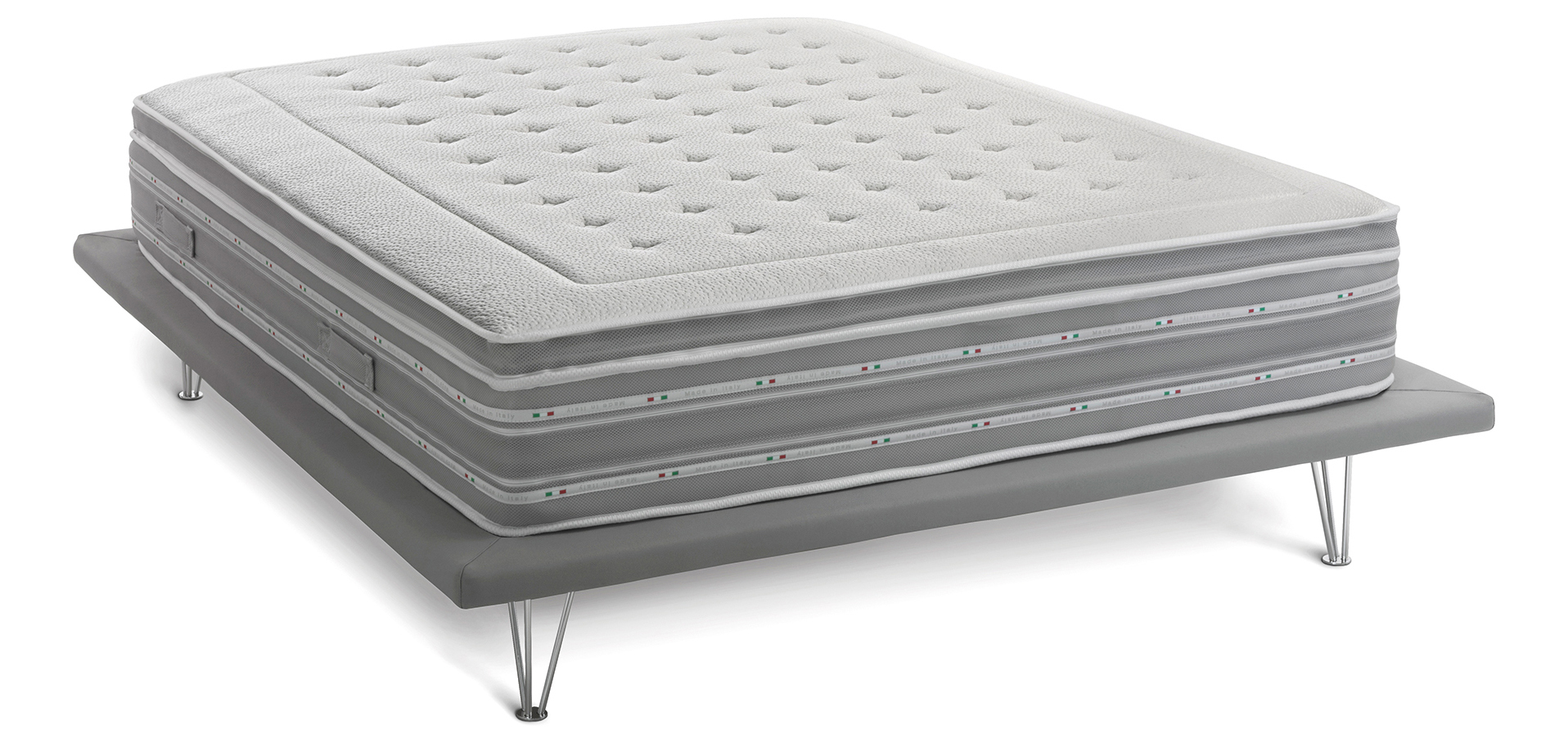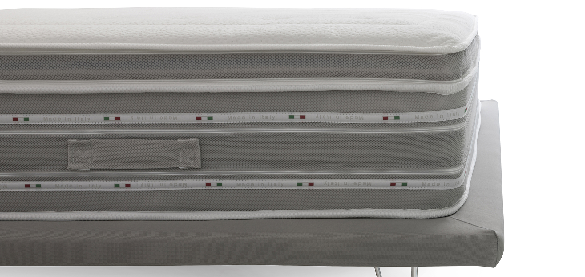 Il materasso termina con un Pillow Top staccabile double face Memory Foam da un lato (mesi freddi) e Breeze dall’altro (mesi caldi).