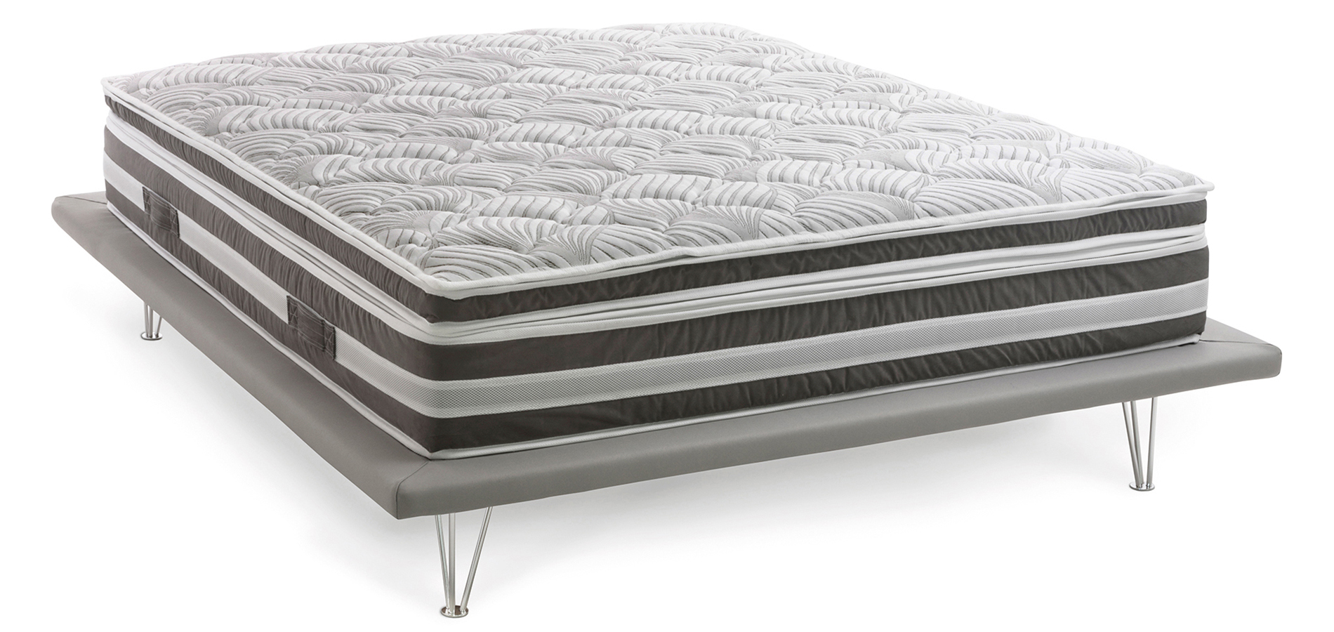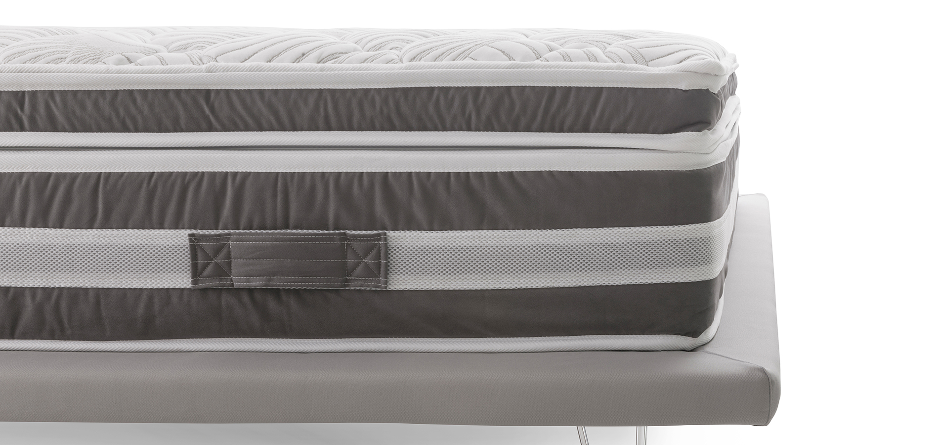 Materasso super ortopedico climatizzato ad alta portanza con sistema Box System in poliuretano espanso, H32 cm. Grazie all'elevato numero di micro molle insacchettate abbinate ad un Pillow Top in Memory Foam offre un riposo anatomico morbido e confortevole.